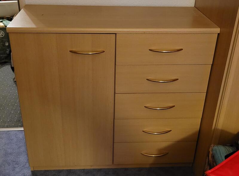 Ich verschenke eine gebrauchte buchefarbene Kommode. Diese steht zur Abholung bereit.