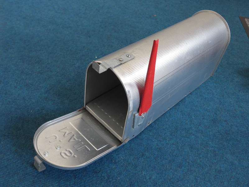 Der Briefkasten vor dem Haus. Meist wird er auf einem stabilen Geländer, Holzunterbau etc aufgestellt und befestigt.50cm lang, 17cm breit, 23 cm hoch.