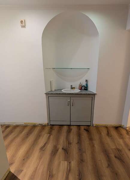 - Trockenbau: Einbau einer Wand (OSB/Rigips, ca. 3 Meter) inkl. Türzarge. Ggf. Spachteln, Tapezieren, Streichen