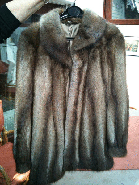 Bisam-Jacke , ca. 70 cm lang, 2 Seitentaschen,Innenfutter ca. Gr. 40/42 35 Euro