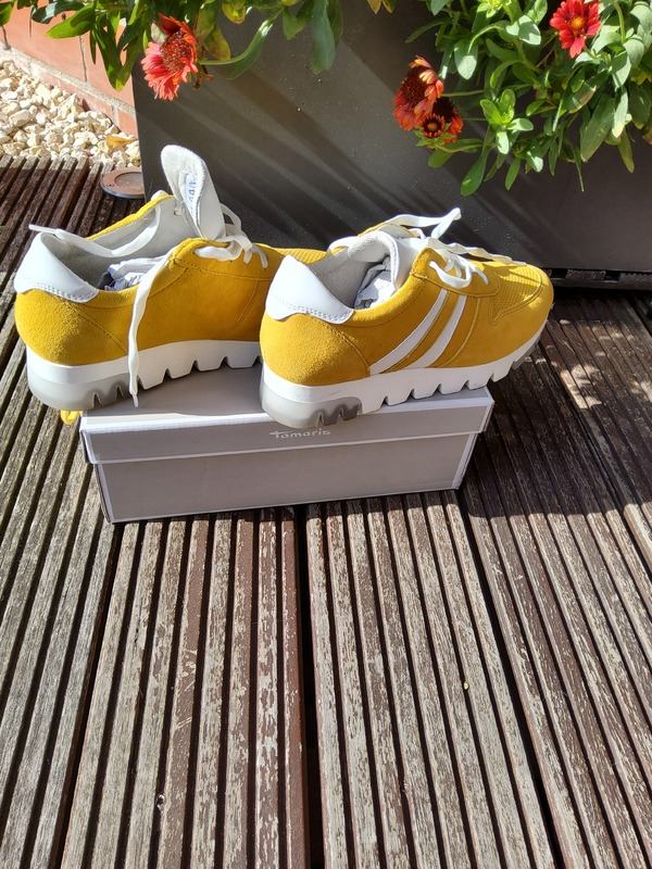 Damen Sneakers in weiss, ocker gelb, Gr. 39, sehr guter Zustand, nur einmal getragen. Preis: : 36 Euro V.B.