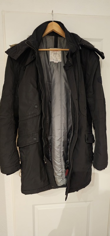Herren Winter Jacke S.Oliver, dunkel blau, Grün XL mit Fell Kaputze, Abnehmbar. Innen sowie Aussentaschen, Knöpfe und Reißverschluss vorne. Sehr warm, Wind, Regen undurchlässig. Geht über die Hüfte. Keine Beschädigungen. Preis : 66 Euro V.B.