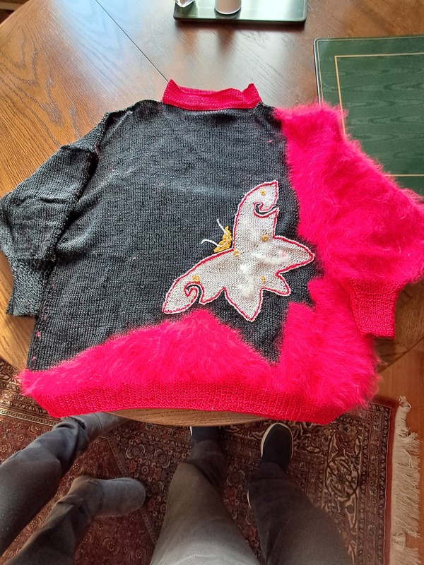 Damen Pullover Handarbeit mit Angora Damenpullover Handarbeit mit Angora Größe ca.Maße lang 57cm, breit 54cm, Schmetterling. Der 2. Pullover hat verschiedene Wollgarne Größe 40/42 Ärmel 34cm lang. Privat verkauf keine Rückname Porto bezaht der Käufer