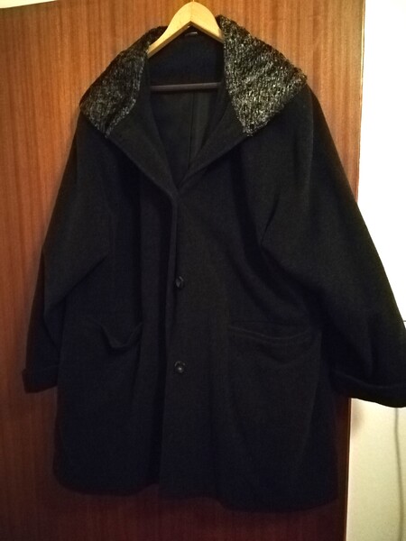 einen Damen Wollkurzmantel schwarz mit großem Kragen in Größe 44.