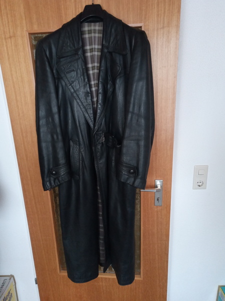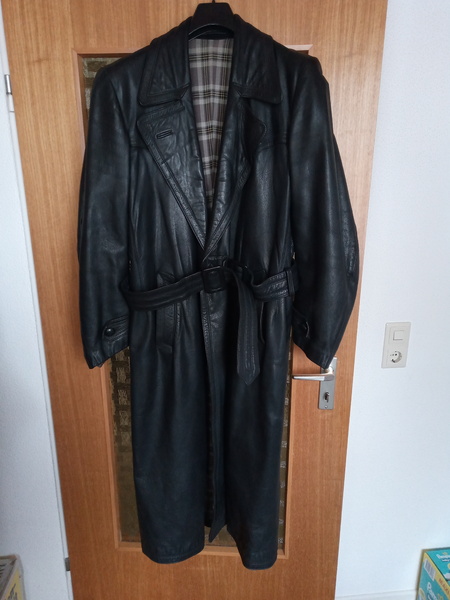 Verkaufe hier einen schönen alten schwarzen Ledermantel aus den 60er Jahren. Der Mantel ist aus einem Stück Hand gefertigt somit ist er ein einzel Stück. Die Größe ist L-XL. Der Preis ist 180 Euro VB. Abholung ist in Delmenhorst.