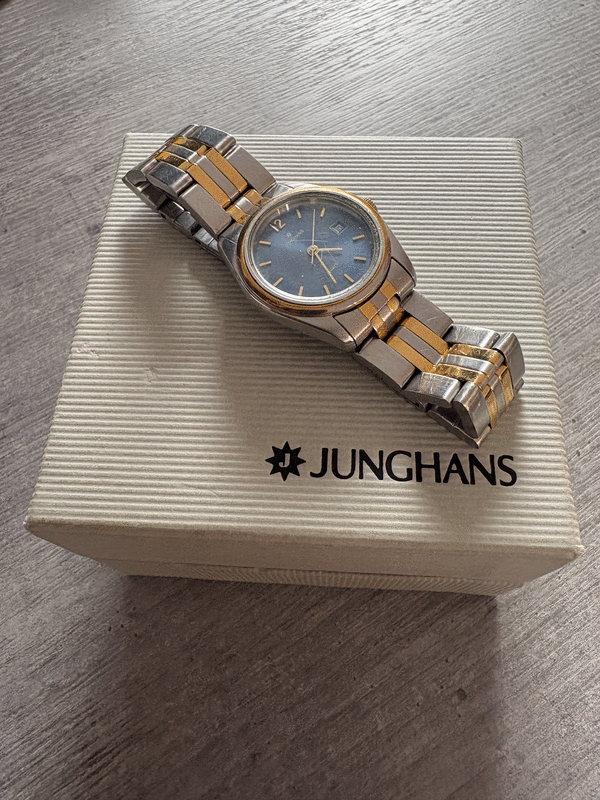 -Sammlerstück- Eine klassische Quarz-Armbanduhr der deutschen Traditionsmarke Junghans, bekannt für langlebige Zeitmesser.