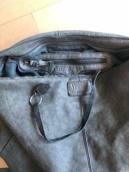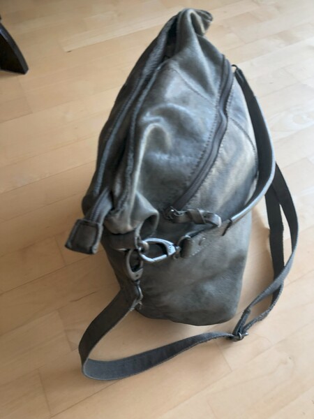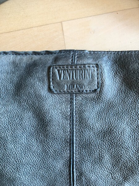 Praktischer Begleiter mit ausreichend Stauraum. Venturini Milano - italienische Lederwaren, 100% Leder, Innenfutter 100% Baumwolle, Farbe: Militärgrün, Ausstattung: Tasche + Reißverschlussfach + Taschenlampe, Außenmaße ca. (LxBxT): 35 x 42 x 15,5cm.