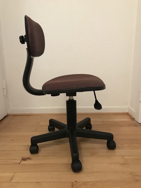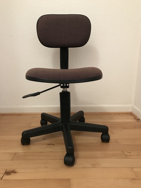 Der Bürostuhl wurde kaum genutzt, hat so gut wie keine Gebrauchsspuren, funktioniert einwandfrei aus Nichtraucher- und tierfreien Haushalt. Brauner strapazierfähiger Stoffbezug