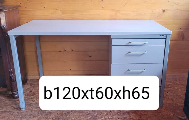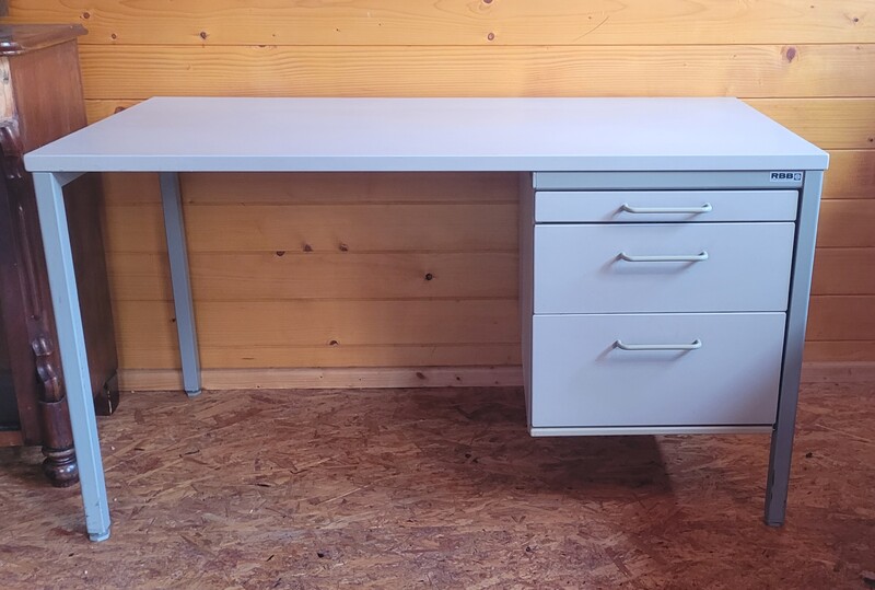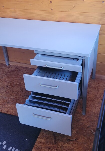 günstig für Büro, Kinderschreibtisch" lichtgrau - Stabiler Schreibtisch 120x60 cm inkl. Schubladenschrank mit pulverbeschichtetem Stahlgestell und Melaminharz Beschichter Holzplatte, mit drei Schubläden Top wie Neu nur 40.-€ bei Abholung
