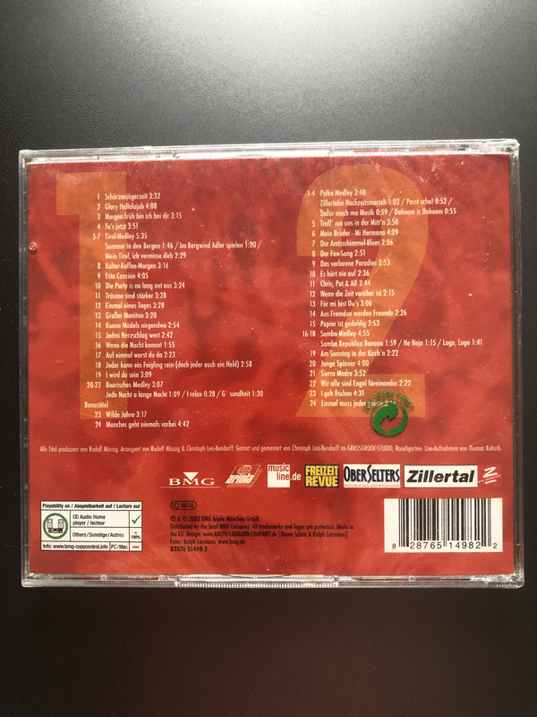 Ich habe diese 2 Audio Musik CD’s leider doppelt geschenkt bekommen, daher ist es ein neuer Artikel in original verschweißter Verpackung. Das Live-Doppelalbum 30 wilde Jahre bietet einen kompletten Überblick über die musikalische Entwicklung der Schürzenjäger. 44 der insgesamt 48 Titel sind ein beeindruckender Mitschnitt ihrer besten Konzerte. Wer die Schürzenjäger noch nie live erlebt hat, bekommt damit einen kleinen Eindruck, was er alles versäumt hat! Vier Lieder wurden für diese CD neu eingespielt. Dazu gehören Stücke wie "Die Party ist no lang net aus" und "Manches geht niemals vorüber". Und dieses Lied ist eine echte Rarität für Schürzenjäger-Sammler, denn darauf singt Peter Steinlechner mit seinen Töchtern Petra und Anita. Fazit: Die Doppel-CD ist selbstverständlich ein Muss für alle Schürzenjäger-Fans. Für alle anderen: anhören und Fan werden! Diese tolle Doppel-CD sucht jetzt einen liebevollen Neubesitzer, ein tolles Geschenk. Tierfreier Nichtraucherhaushalt! Neu und unbenutzt in der verschweißten Originalverpackung, Privatverkauf, siehe Fotos, Neupreis 34,95€ jetzt nur 15€, Versand (€ 3,00) bei Kostenübernahme möglich