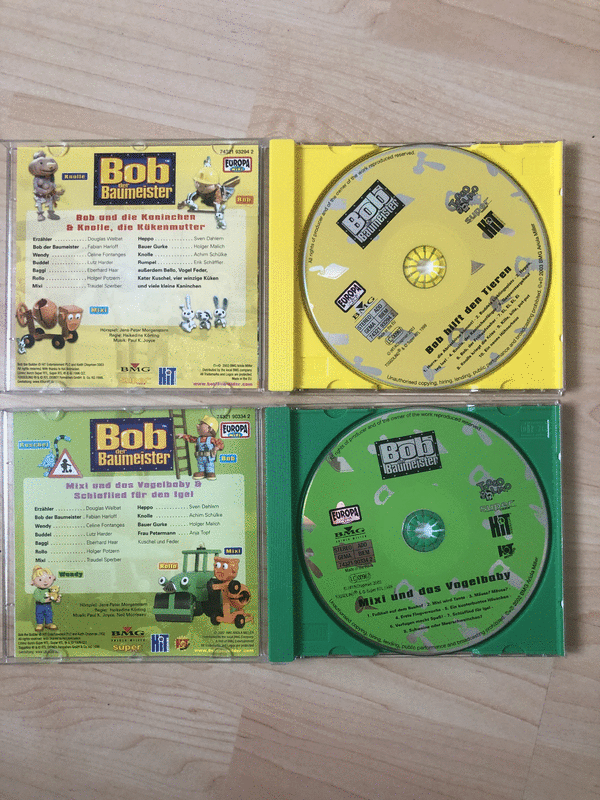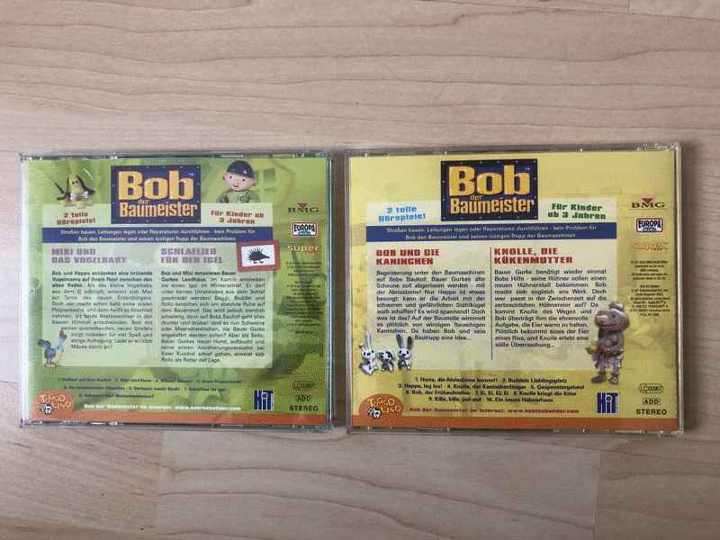 CD 1 - Mixi und das Vogelbaby - Bob und Heppo entdecken eine brütende Vogelmama auf ihrem Nest zwischen den alten Reifen. Als das kleine Vogelbaby aus dem Ei schlüpft, ernennt sich Mixi zur Tante des neuen Erdenbürgers.