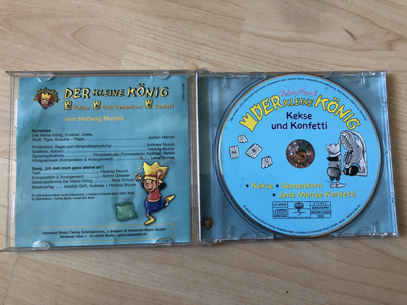 Kinder Hörspiel - Man muss die Feste feiern wie sie fallen, auch wenn sie uns zu plötzlich überfallen und uns dann nicht gefallen. Aber mit Freunden zusammen darf es ruhig auch mal etwas durcheinander gehen - und wird am Ende sicher trotzdem schön. KEKSE Der kleine König hat brav gebadet und möchte sich mit Keksen belohnen. Die Dose ist aber leer! Und nicht nur das! Grete und Buschel mopsen ihm auch noch das Obst weg. Was ist denn da nur los? Gesamtspieldauer: ca. 40 Minuten
