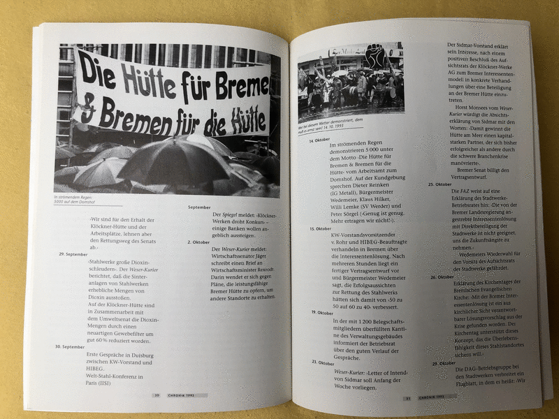 sehr seltener Dachbodenfund aus den 90er Jahren - Chronik eines Widerstandes / Und es lohnt sich doch! Geschichte der Klöckner-Hütte in Bremen, Herausgeber: Betriebsrat der Klöckner Stahl GmbH, Arbeiterkammer Bremen, Autor/in: Sörgel, Dr. Angelina / Eike Hemmer / Horst Meyerholz, Format: 17x23,5 cm, Seiten: 46, Einband: kartoniert, Erschienen: 1994. Dieses Buch sucht jetzt einen liebevollen Neubesitzer, ein tolles Geschenk für einen Mitarbeiter oder eine Trophäe für Ihr Sammlung, unbeschädigte Teile in einem sehr guten Top Zustand, Privatverkauf, siehe Fotos, jetzt nur 12€, Versand (€ 3,00) bei Kostenübernahme möglich