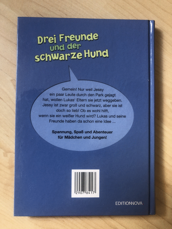 Ein Buch für die Lese-Kids von Thomas Fuchs. Gemein! Nur weil Jessy ein paar Leute durch den Park gejagt hat, wollen Lukas‘ Eltern sie jetzt weggeben. Jessy ist zwar groß und schwarz, aber sie ist doch so lieb! Ob es wohl hilft, wenn sie ein weißer Hund wird? Lukas und seine Freunde haben da schon eine Idee.