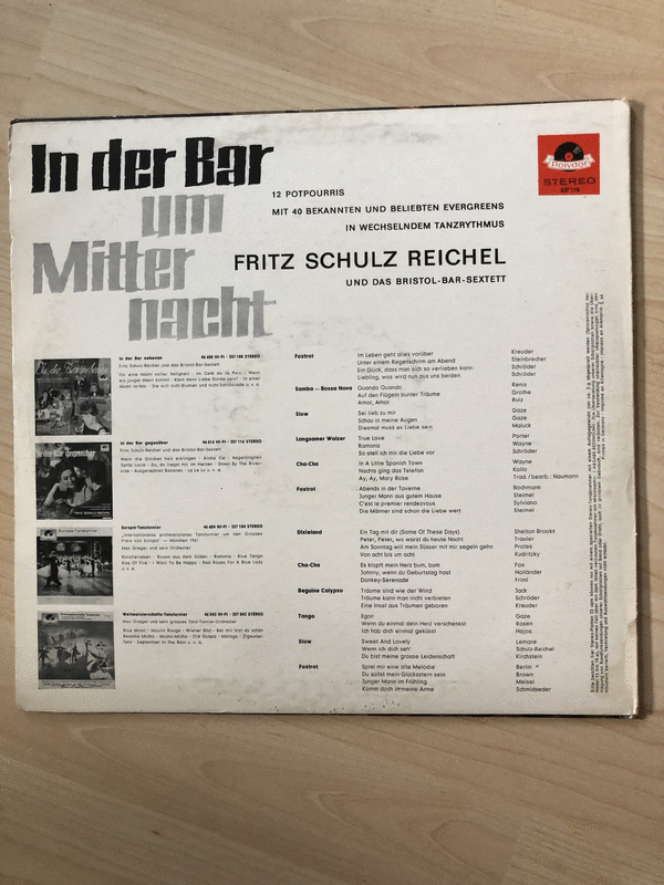 Fritz Schulz-Reichel & Bristol-Bar-Sextett - LP Schallplatte Vinyl, Label: Polydor 1963.