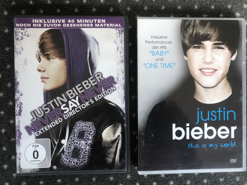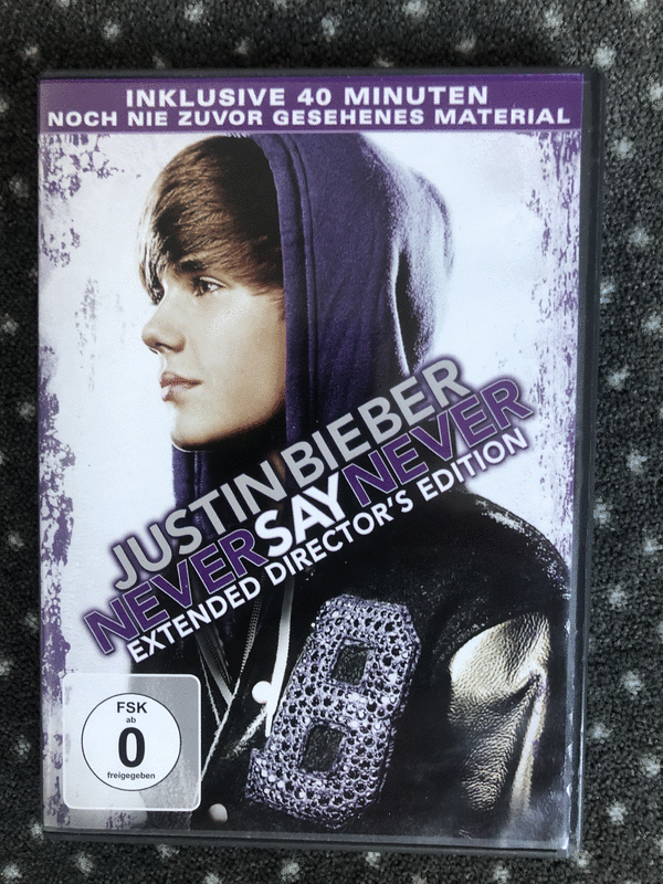 Diese einzigartigen DVD‘s nimmt den Zuschauer mit auf eine Reise, die zeigt, wie aus Justin Bieber ein Phänomen wurde. Justin ist gerade mal 17 und weiß es aber schon ganz genau. Never Say Never, gerade er ist das lebendige Beispiel für die These „Sag niemals nie“. Denn Justin Bieber ist ein Phänomen. Dank Web 2.0 schafft er mit 14 einen kometenhaften Aufstieg. Für seine Konzerttournee 2010 reist Justin Bieber um die ganze Welt. Erlebe die getriebene Seite des Popstars, die bisher nur wenige gesehen haben auf DVD, Dokumentation/Musikfilm, einzigartige Performances der Hits. Diese Rarität sucht jetzt einen liebevollen Neubesitzer und ist ein tolles Geschenk für einen Sammler oder eine Trophäe für sich selbst. Gut erhaltene Artikel, siehe Fotos, Tierfreier Nichtraucherhaushalt! Privatverkauf, Einzelpreis 6,00€ oder beide DVD‘s zusammen nur 10€, Versand 3€ bei Kostenübernahme möglich