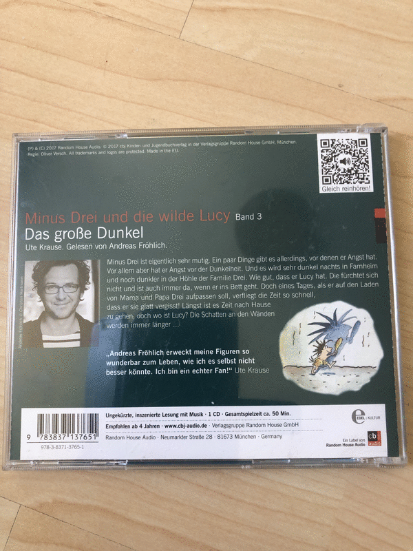 Das Große Dunkel - Kinder Hörspiel - Minus Drei ist eigentlich sehr mutig. Ein paar Dinge gibt es allerdings, vor denen er Angst hat. Vor allem aber hat er Angst vor der Dunkelheit. Und es wird sehr dunkel nachts in Farnheim und noch dunkler in der Höhle der Familie Drei. Wie gut, dass er Lucy hat. Die fürchtet sich nicht und ist auch immer da, wenn er ins Bett geht. Doch eines Tages, als er auf den Laden von Mama und Papa Drei aufpassen soll, verfliegt die Zeit so schnell, dass er sie glatt vergisst! Längst ist es Zeit nach Hause zu gehen, doch wo ist Lucy? Die Schatten an den Wänden werden immer länger ... Gesamtspieldauer: ca. 50 Minuten