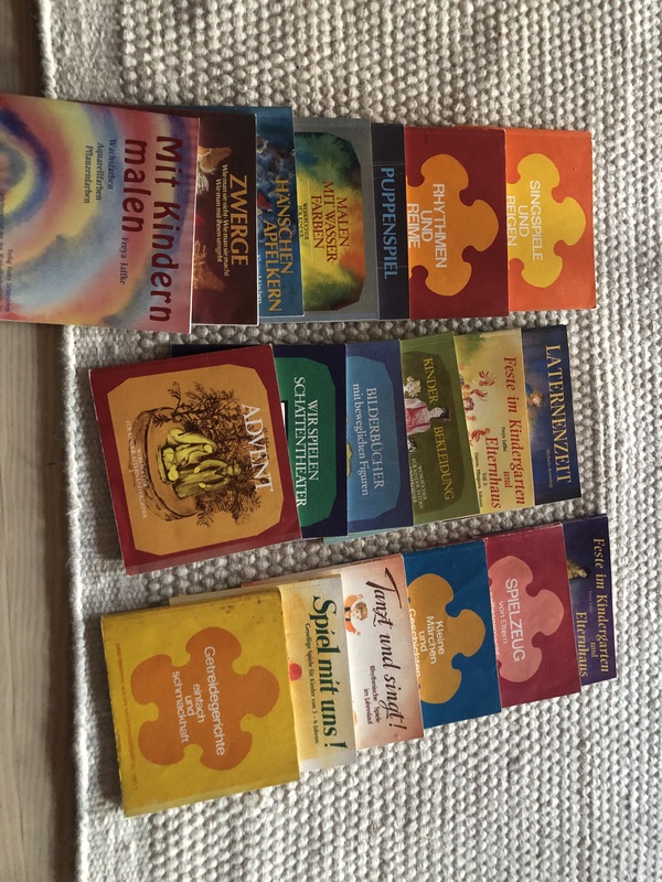 Ich habe 19 Bücher: Arbeitsmaterial für Waldorfkindergärten, Werkbücher für Kinder, Eltern und Erzieher abzugeben. Auch etliche Kinder- und Jugendbücher.