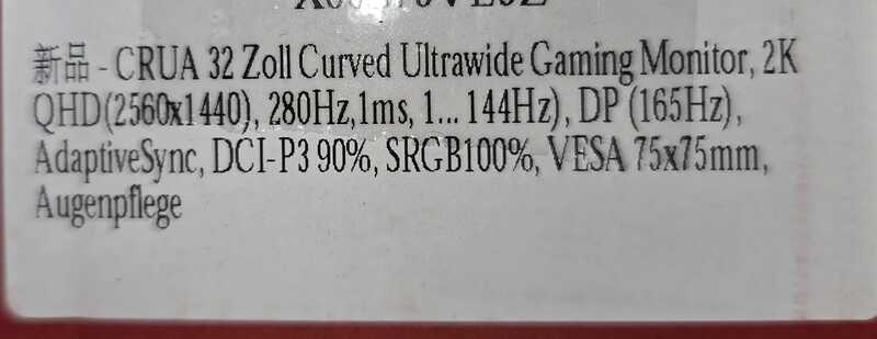 Hallo, ich biete hier einen gebrauchten CRUA Curved Monitor zum Verkauf an. Dieser Bildschirm ist perfekt für ein immersives Gaming-Erlebnis oder produktives Arbeiten am PC. Er bietet dir ein weites Sichtfeld und eine angenehme Darstellung.
