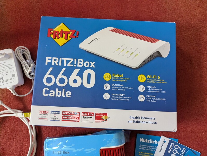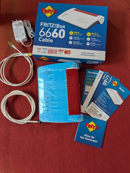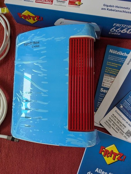 Diese Fritzbox 6660, Art-Nummer ist 2000 2910, bei Saturn selbst gekauft, möchte ich mit der originalen, blauen Schutzfolie verkaufen. Sie ist ohne Branding! und wird verkauft, weil ich einen Glasfaseranschluß nun habe.