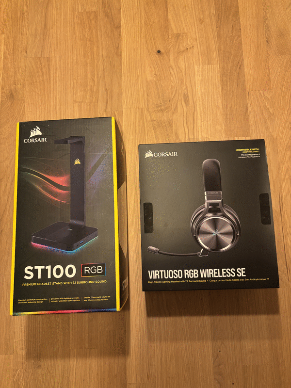 Verkaufe ein gebrauchtes Corsair Virtuoso RGB Wireless Headset in gutem Zustand inkl ST100 Headset Stand.