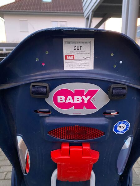 Kinder Fahrradsitz von OK Baby, mehrfach Testsieger von Stiftung Warentest.