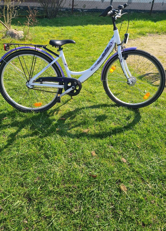 Das Fahrrad hat eine Rücktrittbremse, Nabenschaltung und das Licht funktioniert. Ein Katzenauge fehlt.