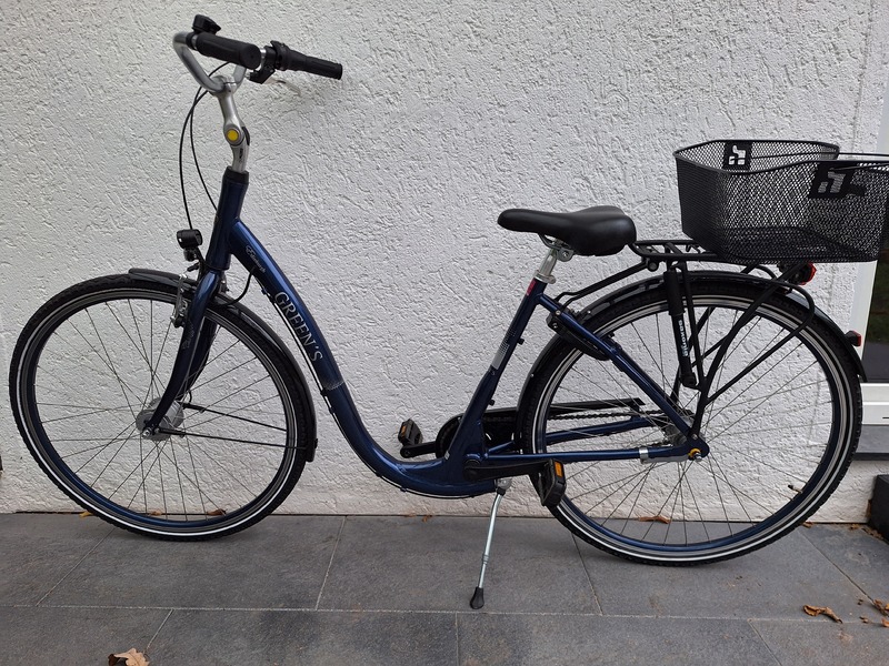 Metallikblauer 26er Alu-Rahmen, tiefer Einstieg, 3 Gang Shimano-Schaltung, LED Licht mit Nabendynamo, blaue Alufelgen, Fahrradkorb von Basil, reflektierende Sicherheitsmäntel...Details siehe Fotos!