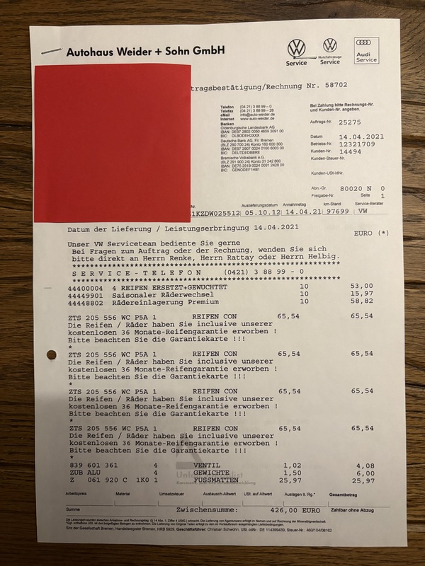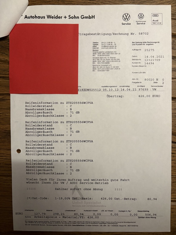Diese waren zuvor auf einem Golf 6. Das Fahrzeug wurde jüngst verkauft.