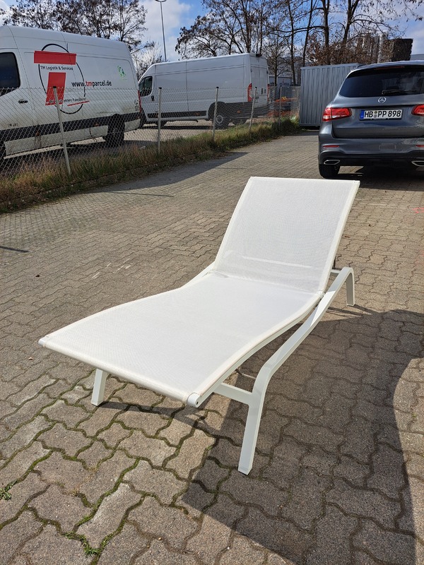 Gartenliege, unbenutzt. Hochwertige Qualität. Alu, weiss lackiert.