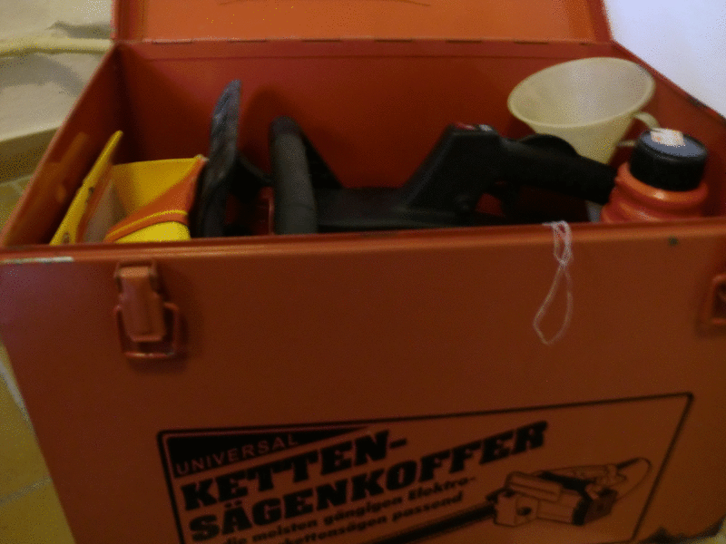 Inclusive Kettensägekoffer mit Inhalt ( Bio Kettenöl, Zweitaktmischung, u.a.)