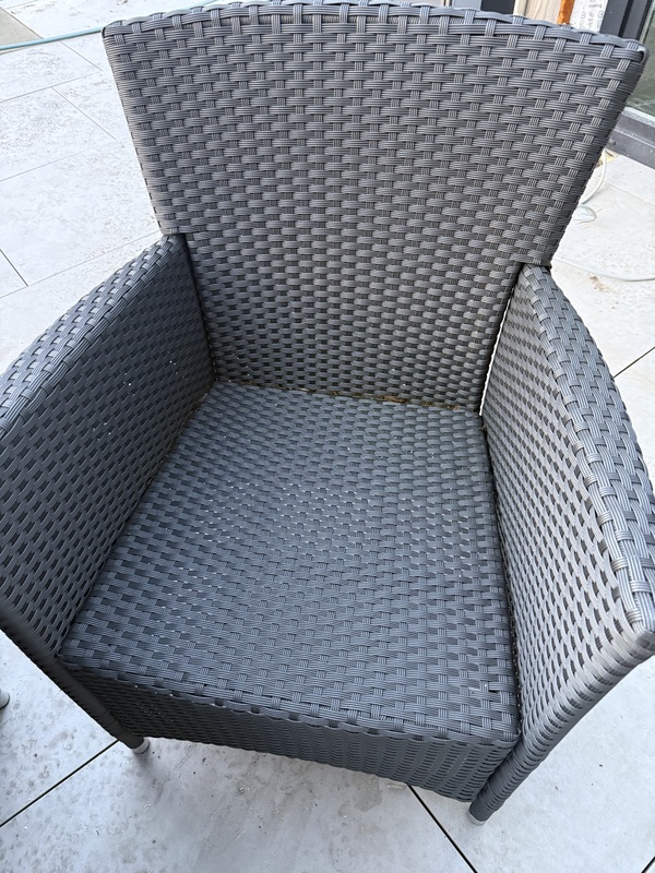 Verkaufe acht Gartenstühle von Sunfun und einen Gartentisch mit den Maßen 2,00 m x 1,00 m in der Farbe anthrazit. Die Stühle sind fest und haben somit keine verstellbare Rückenlehne. Für jeden Stuhl ein passendes eckiges Kissen aus dem Baumarkt hatte ich dazu gekauft in beige. Die sind nicht auf dem Foto, gebe ich aber dazu. Macht mir gerne ein realistisches Preisangebot.