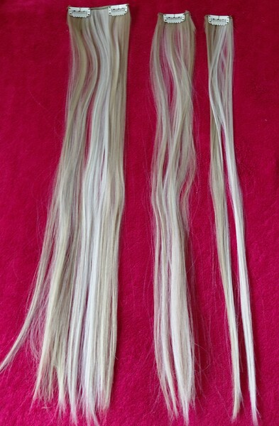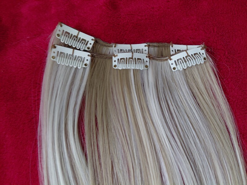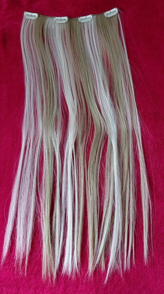 Extensions, neu, blond gesträhnt, mit Kämmchen.