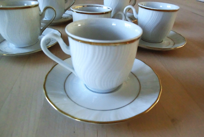 Verkaufe aus Haushaltsauflösung 6 Mokkatassen Espresso Tassen und 5 Untertassen mit Goldrand. - Winterling Kirchenlamitz Bavaria 5 ... siehe Foto