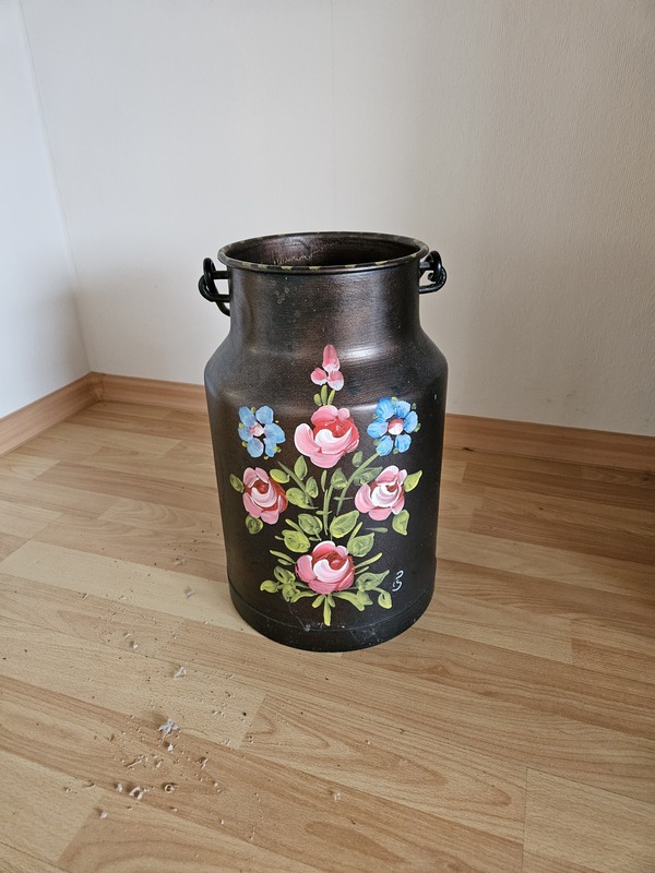 Milchkanne mit Blumenmotiv 40 cm hoch, z.B.