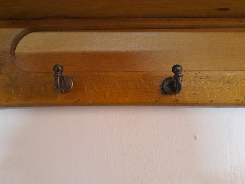 1935-1941 Art déco Geschirrtuchhalter Eichenholz Handtuchhalter Regal mit Ziertuchstange