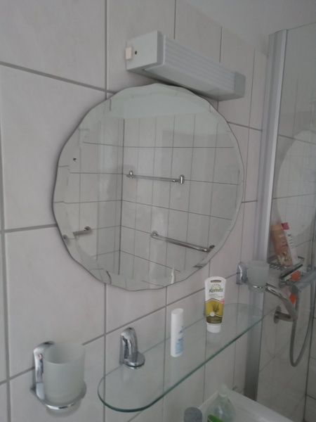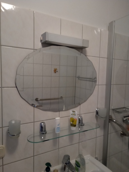 Verkaufe hier einen schönen Badezimmer Spiegel mit Ablage und zwei Halter für Zahnputzbecher. Der Preis für alles ist 27 Euro. Abholung ist in Delmenhorst.