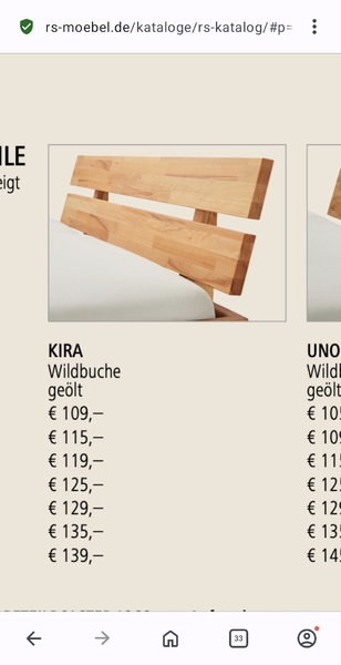 - Bettgestell von r+s Möbel Klassiker Nr. 6, 45 cm hoch, mit Kopf- und Fußteil (im Foto nicht anmontiert). Neupreis ca. 400 €