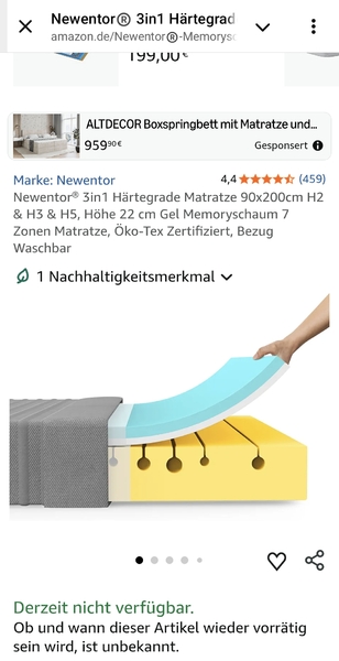 - Matratze von Newentor, 3 in 1 Härtegrade, Neupreis 270 €.