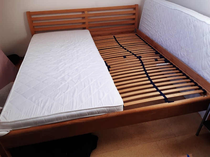verkaufe ein gut erhaltenes Bett (180x200) aus massivem Buchenholz mit zwei Lattenrosten, sowie zwei Matratzen falls gewünscht.