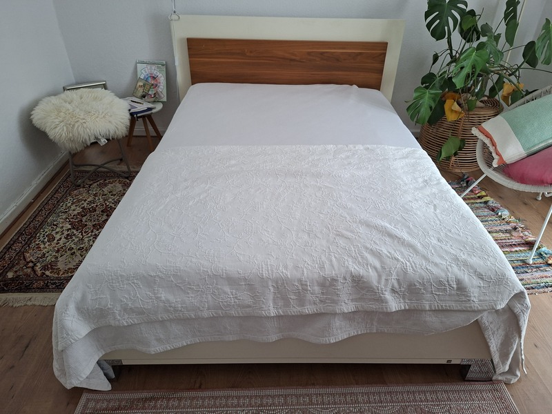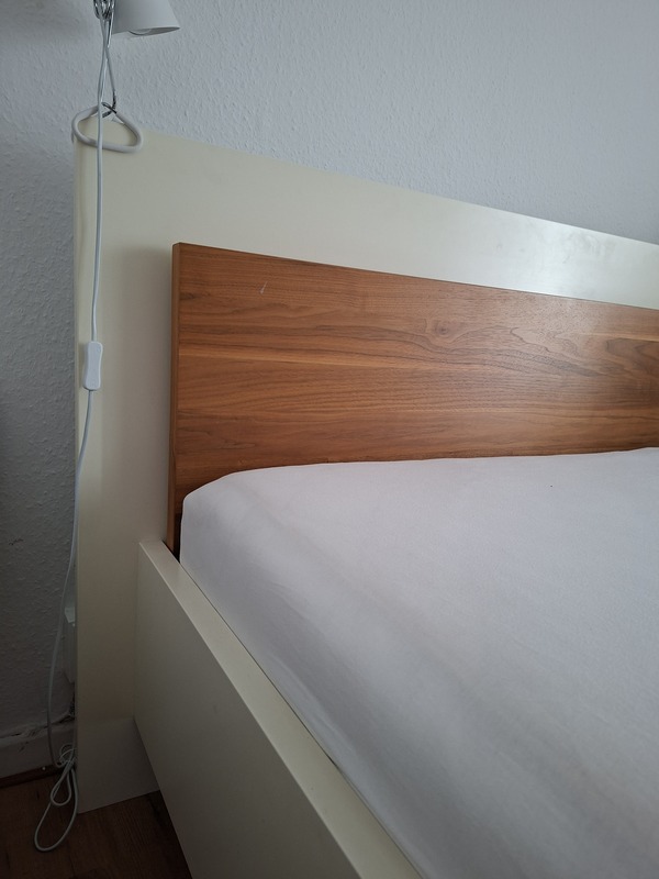 Ich verschenke dieses Bett aus Holz in weiß mit einem Kopfteil aus Holz inkl. Lattenrost und (optional mit Matratze 140x140cm).