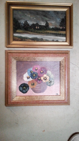 Blumen 29cmx24,5cm Öl, Haus 29,5cmx20cm Öl, Pferd 32,5cmx24cm, Baum 24,5cmx29,5cm alles ca. Maße.