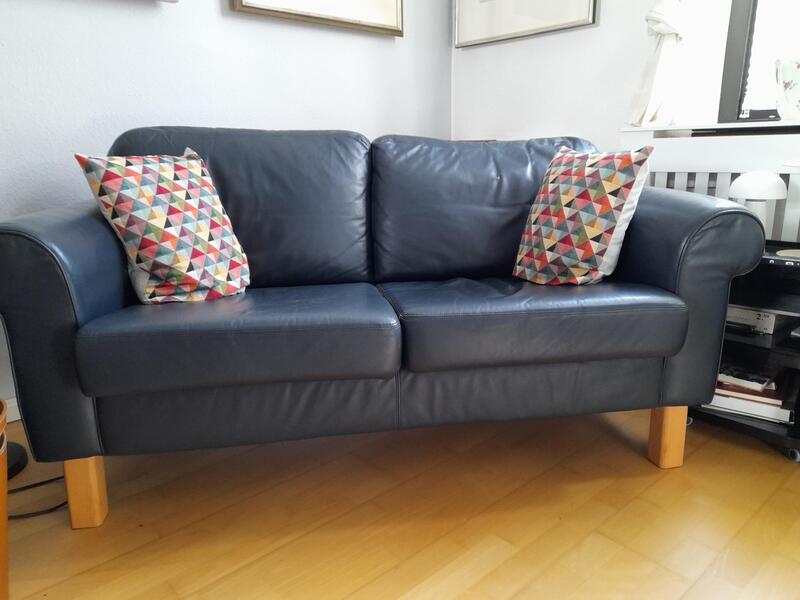 wir verkaufen unsere beiden blauen Ledersofas von Musterring. Klassische Form, guter Zustand. Rückenlehne in Leder, Sofas können also frei im Raum stehen.