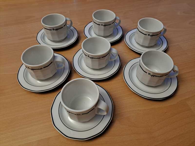 Cappuccino-Tassen Lubiana Merkury, mit Untertassen, Unterteller 14cm Durchmesser, Tassen 7,5cm Durchmesser, 7cm Höhe, sehr gut erhalten, je 4,00 Euro VB..Bei dieser Anzeige handelt es sich um einen privaten und keinen gewerblichen Verkauf .