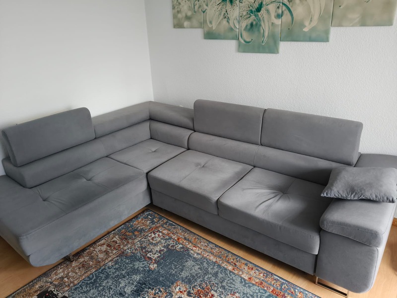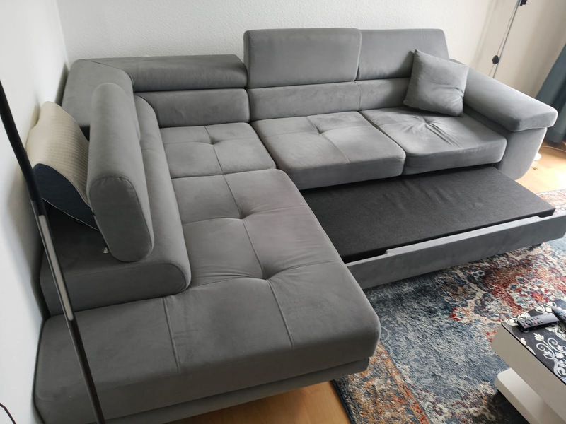 Guten Tag, wir verkaufen unser Ecksofa mit Bettfunktion, Bettkasten, Kopfstützen, rechts/links verstellbar. Sehr gut erhalten, sehr pflegeleicht. Bezüge nicht abziehbar.
