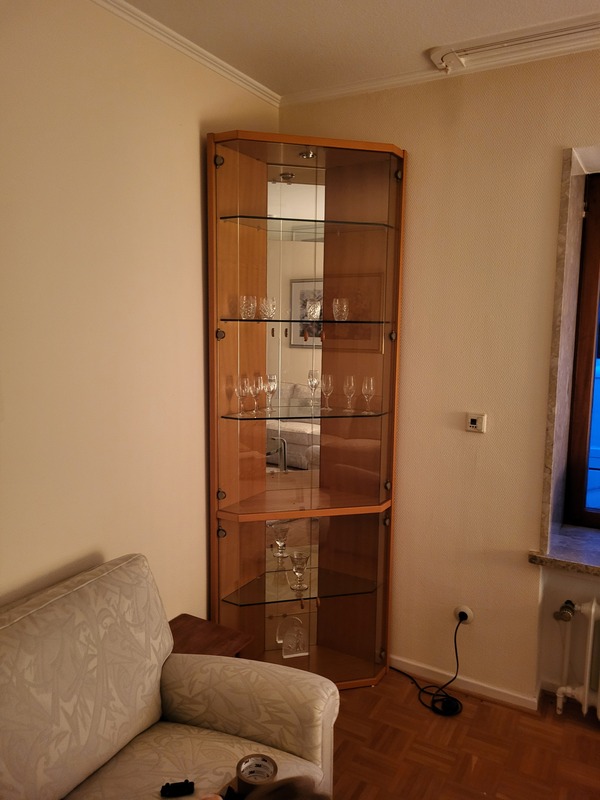 Ich biete eine schöne Eckvitrine aus Holz beleuchtet für 60 Euro