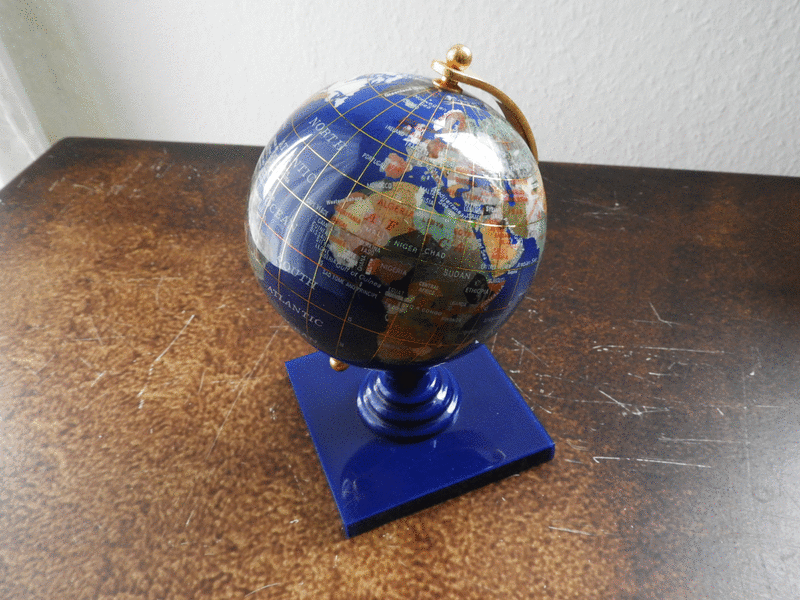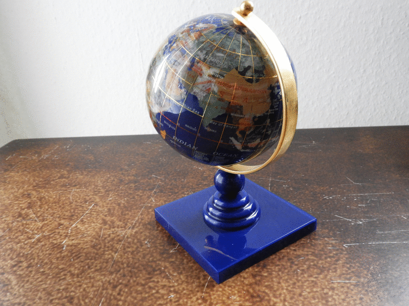 Biete einen sehr schönen 18cm hohen Edelsteinglobus an. Ich hätte gerne 500€ VHB. Es handelt sich herbei um ein Einzelstück. Jedes Land ein Die Linien für langen und breiten Grad sind aus Gold.