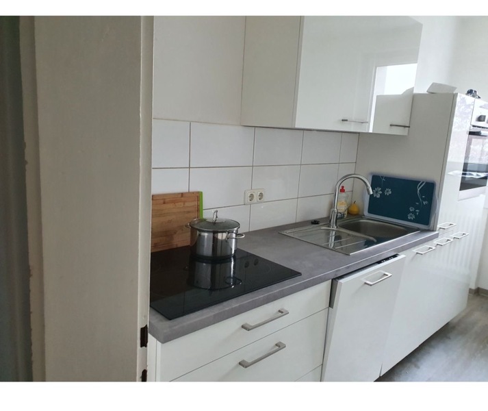 Die Gesamtlänge der Küche beträgt ca. 2,80 m, die Arbeitsplatte ist etwa 1,90 m lang. Mit dabei ist ein Backofen (Privileg PBWR6 OH5F IN), der erst Ende 2024 neu bei Amazon gekauft wurde und somit noch sehr neu ist. Außerdem ist die Spülmaschine mit dabei. Diese wurde damals mit der Küche mitgeliefert. Ein Kühlschrank ist nicht enthalten.