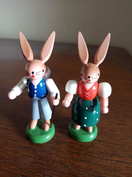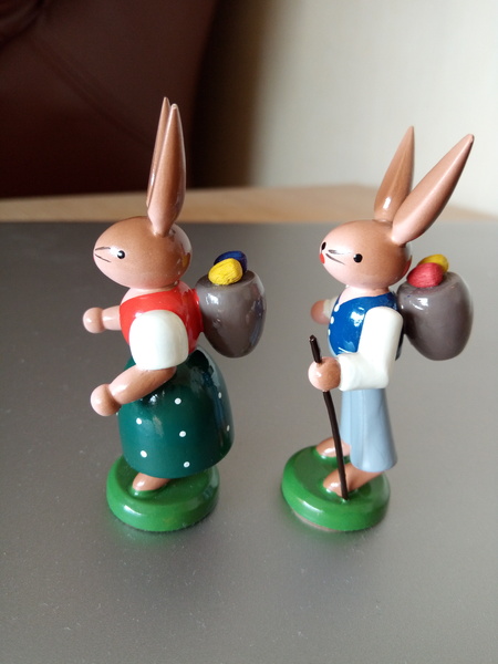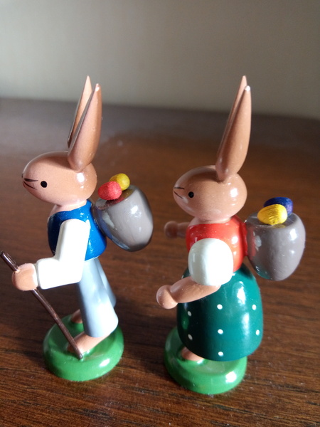 Erzgebirge Osterhasen mit Kiepe und Eier 7,5cm hoch. Zustand wie aus dem Geschäft, ohne Beschädigung. Fa. Dregeno 69 Euro Verhandlung