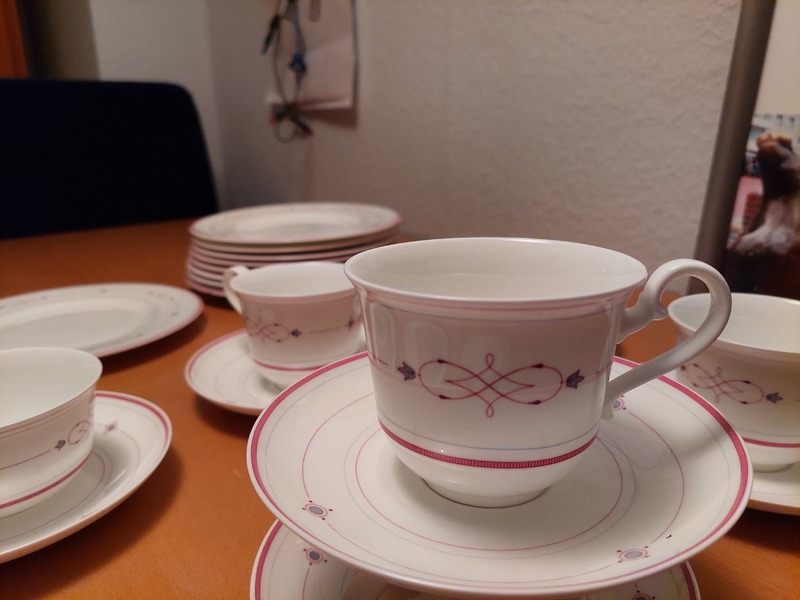 Ich verkaufe von der Serie ARAGON von Heinrich/Villroy & Boch folgende Teile: 12 Untertassen, 4 Teetassen, 5 Kaffeetassen, 2 Sahnekännchen, 1 Zuckerdose, 9 Teller mit einem Durchmesser von 21 cm und eine Teekanne gegen Gebot. Das Service ist spülmaschinenfest. Abzuholen in Findorff.